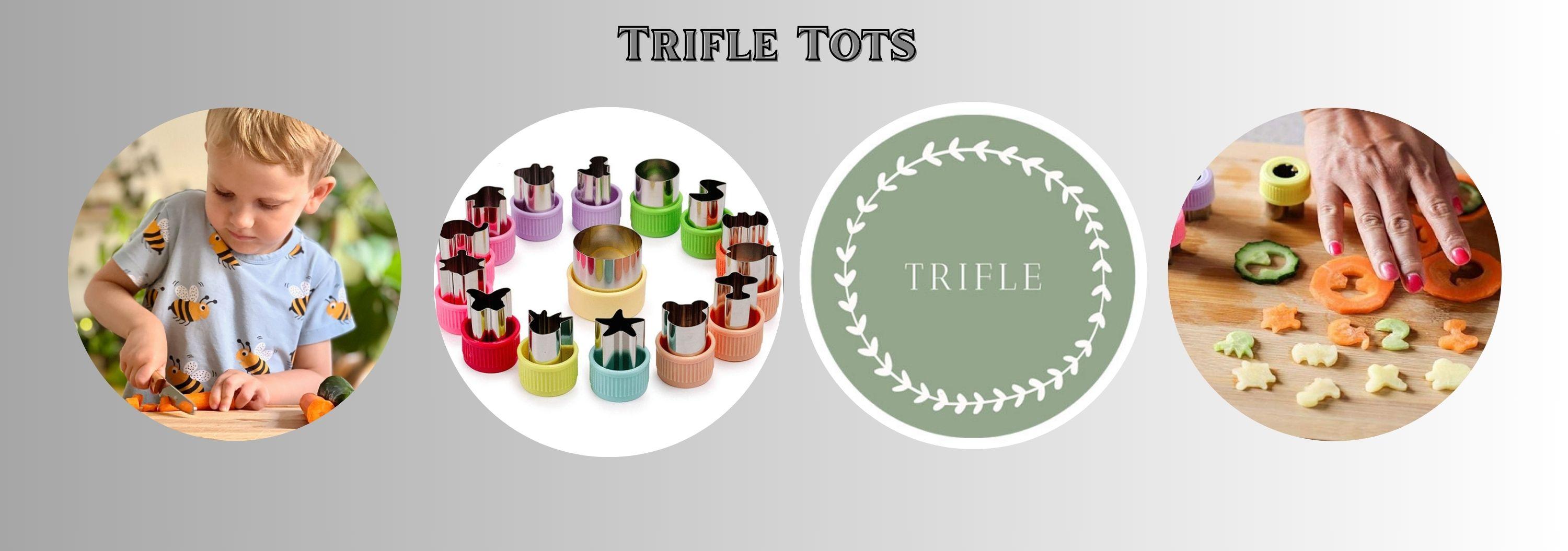 Trifle Tots fruit and vegetable cutter turns everyday meals into playful moments. This set of eight includes one large circle and seven cute shapes for creative presentation. The fruit and vegetable cutter works perfectly for lunch boxes, snacks, desserts, sushi, fondant, and party platters. Polished stainless steel ensures easy cutting, safe handling, cleaning, and long-lasting performance for children and adults.